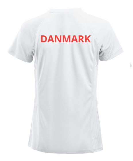 Inkl. Dannebrog på venstre bryst og "Danmark" på ryggen